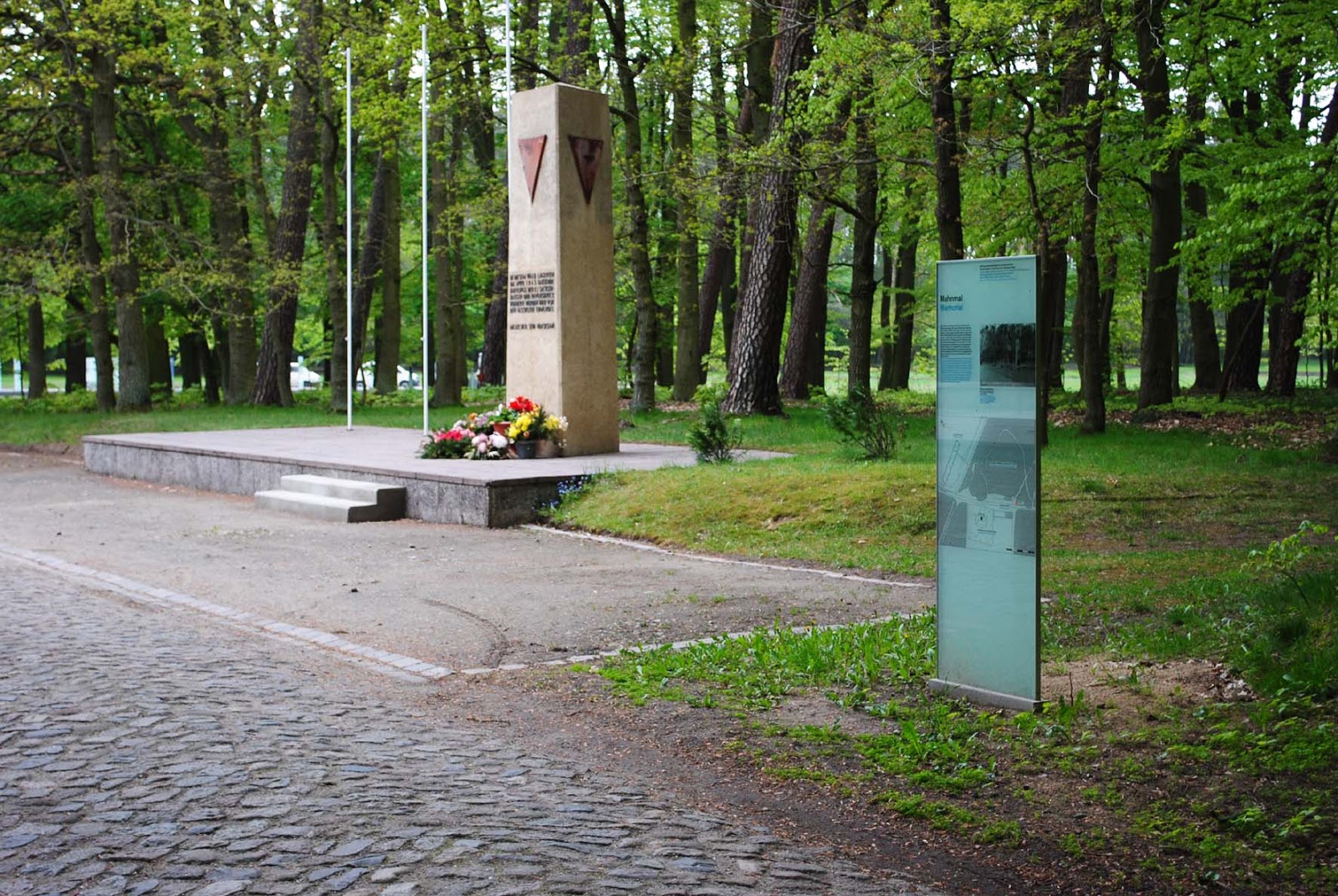 4 When the stele was erected, researchers thought that prisoners from the Ravensbrück concentration camp were gathered here. Historians proved later, however, that the conveys coming from Ravensbrück were gathered nearby but not in the Below Forest.↩