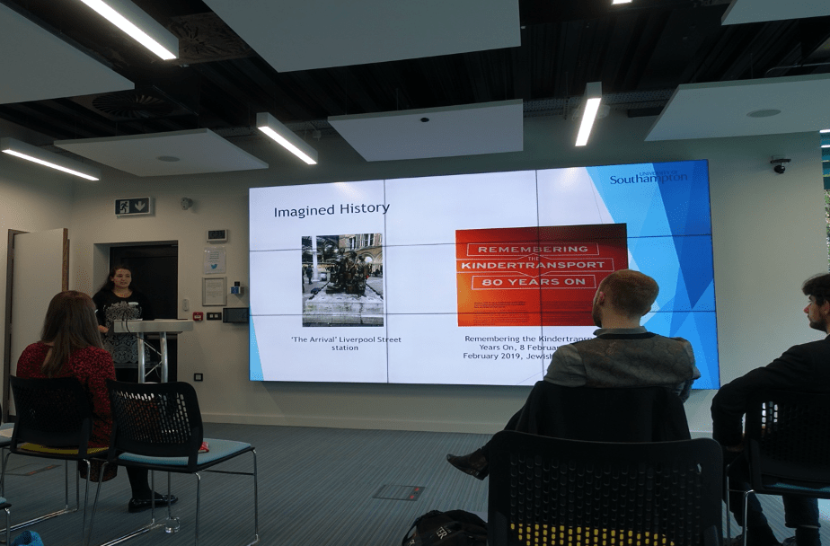 After a short break for lunch, the second panel took place, which incorporated papers on the representation of the Holocaust by Nicola Woodhead (University of Southampton), Emanuel-Marius Grec (University of Heidelberg), and Charlotte Mears (Kingston University). Nicola presented her research on the lives on “transmigrant” kinder of the Kindertransport and how the representation of the Kindertransport has influenced how they view themselves and present their life narratives. Emanuel-Marius’ paper engaged with the concept of “competitive memories” in Romania and the tension between the memory of communism and Romanian fascism in historiography. Charlotte’s work examined the representation of the Holocaust in private museums, specifically its utilisation for shock value as a means to attract paying customers.