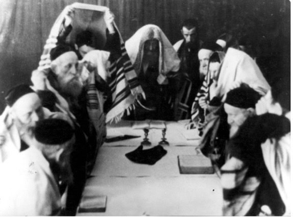 October 1940, Jews at prayer on Yom Kippur (Day of Atonement) in Krakow, Poland. Yad Vashem Photo Archives 1663/19