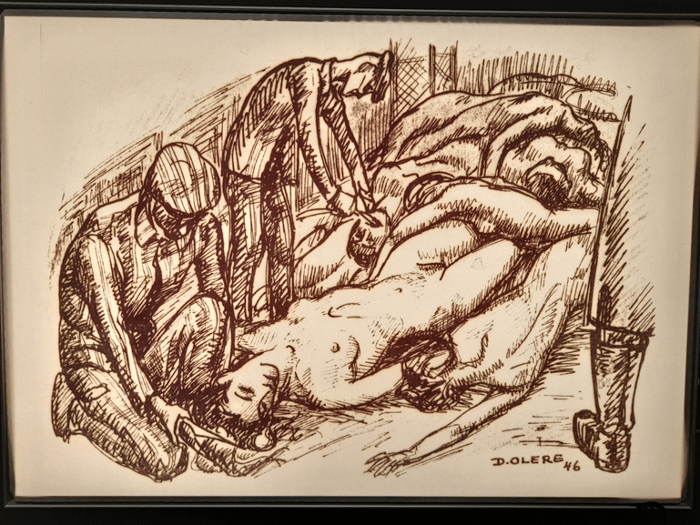A sketch from 1946 by David Olère: the ‘dentist’ and the ‘barber’.