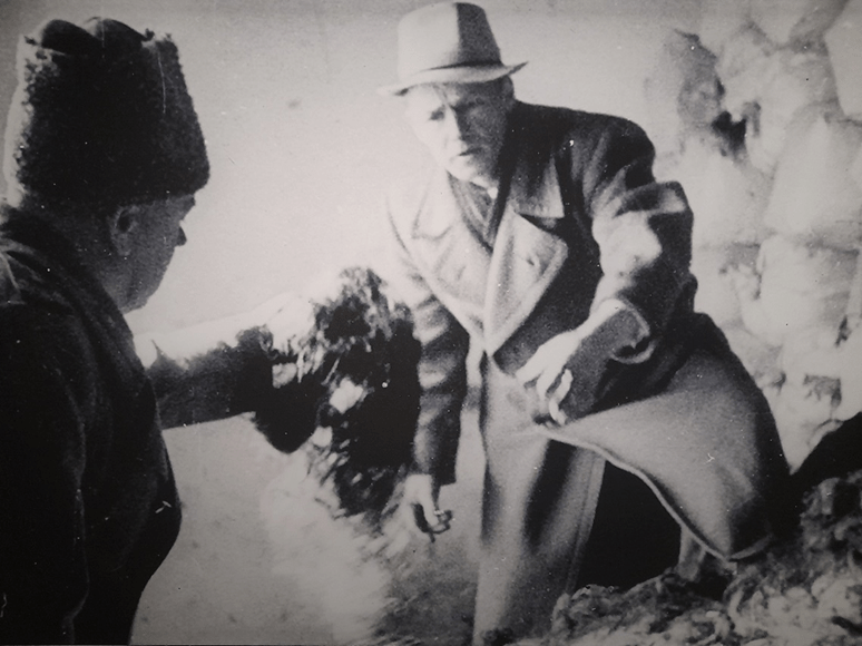 Many of the images exhibited here are familiar from textbooks, documentaries or fictional representations. Photographs from the liberation of Auschwitz evoke our sympathy and pity at the sight of skeletal survivors in three-tiered bunks. Other images connect us with the murdered victims in different ways. In one such photograph, taken after the Soviet liberation of Auschwitz in 1945, investigators are shown discovering piles of human hair.