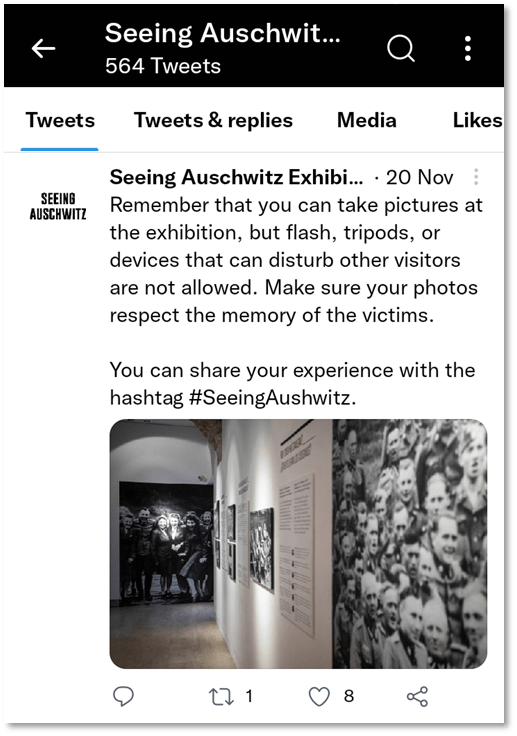 Screenshot from the ‘Seeing Auschwitz’ official Twitter account.